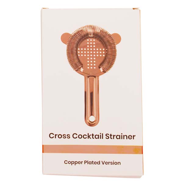 Nordicbar cocktail-siivilä tyylikkäällä kupariviimeistelyllä. Klassinen ristikkosuodatin ja tiukka kierre takaavat tasaisen kaadon ja täydellisen istuvuuden vakiokokoisiin ravistimiin.