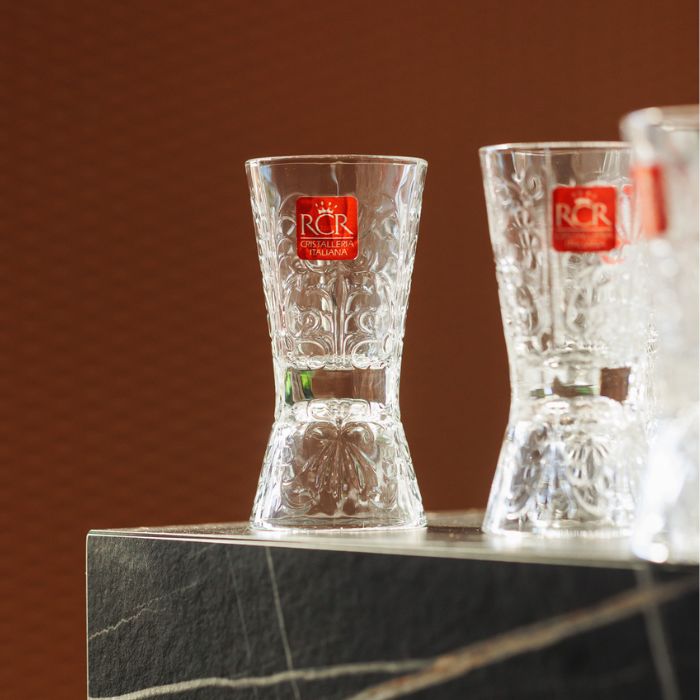 Kaikki RCR-lasit on valmistettu Luxion-kristallista, joka on 100% lyijytön materiaali, tunnettu kirkkaudestaan ja kestävyydestään.